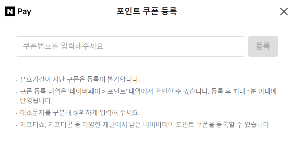 이 곳에서 네이버페이 포인트 쿠폰을 등록할 수 있는데요.